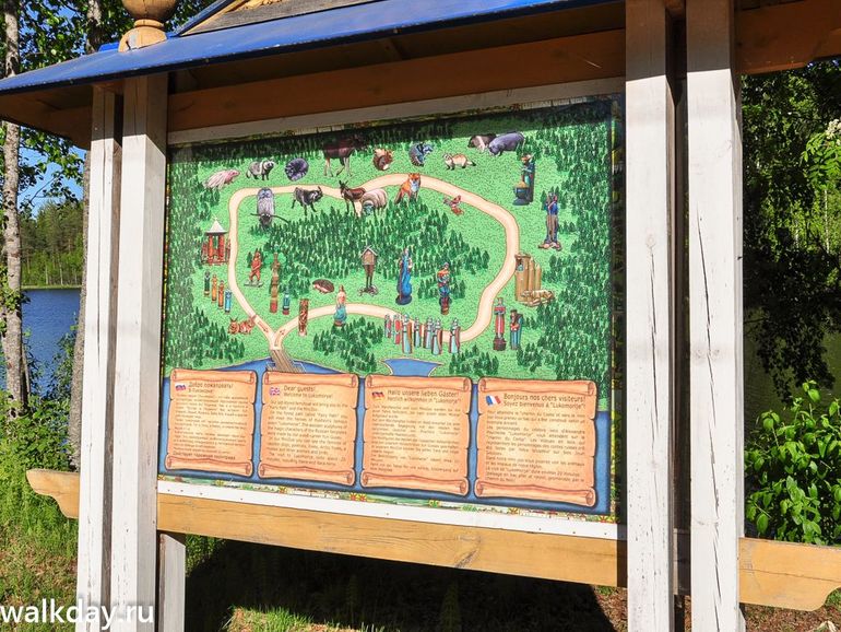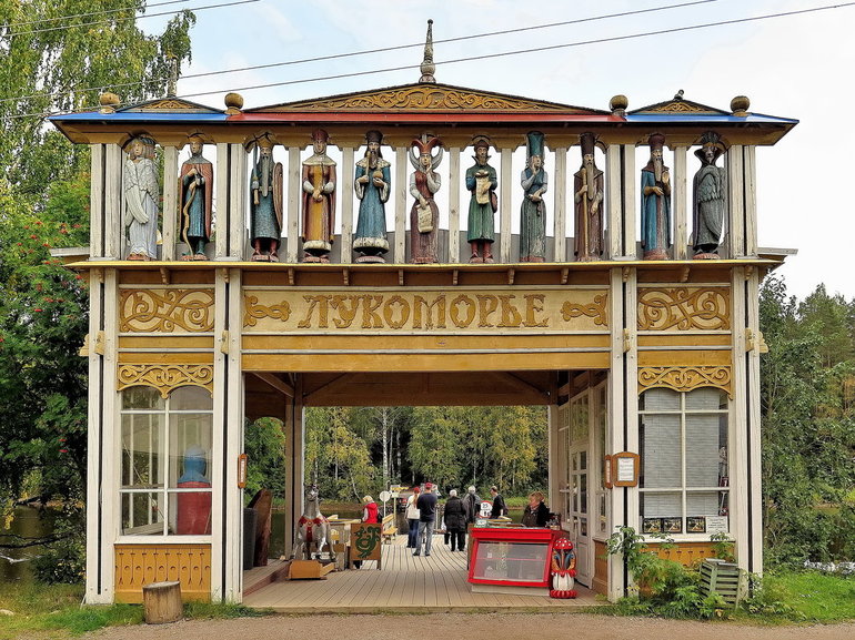 Мы очень хотели попасть на поляну сказок - в Лукоморье, куда из Мандрог можно попасть на пароме: