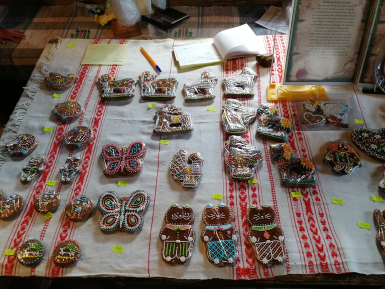 Спустились вниз, а там опять изделия мастеров народных промыслов: