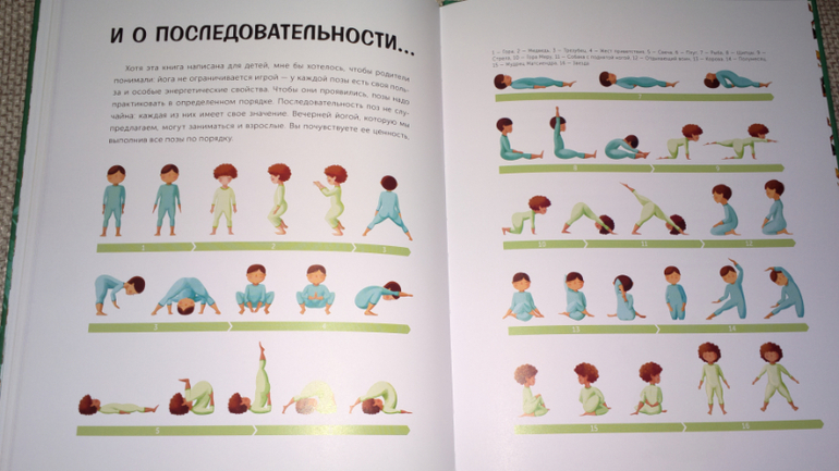 Автор пишет, что важно соблюдать последовательность поз. Будет замечательно, если и родители присоединяться к ребенку и вместе будут заниматься вечерней йогой. Это так расслабляет.