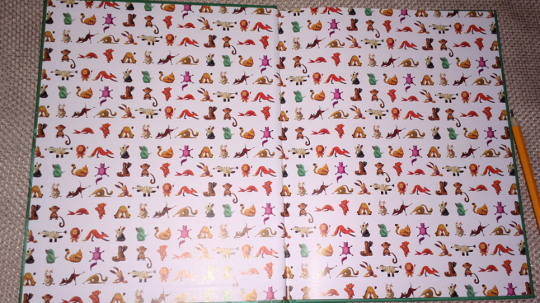 В самом начале книги размещена небольшая история для детей, в которой игрушки приглашают всех читателей на занятие вечерней йогой. К каждому упражнению есть понятное описание и картинка с пошаговым выполнением упражнения. На каждой страничке деткам помогает выполнять упражнение плюшевая игрушка. Книга имеет такую спокойную цветовую гамму, рисунки милые.