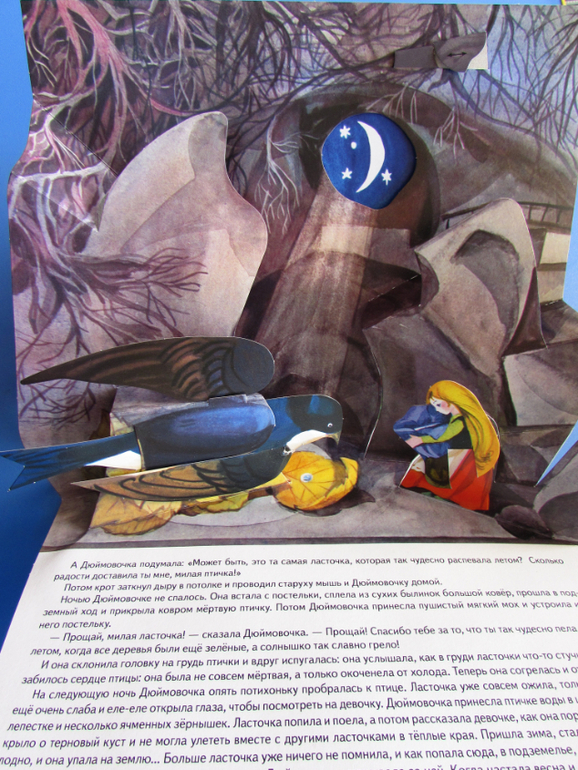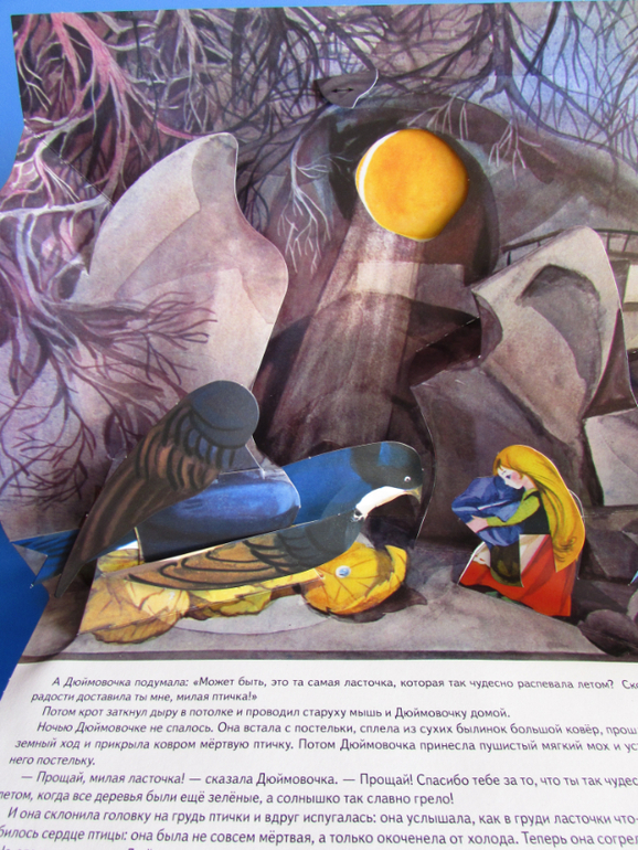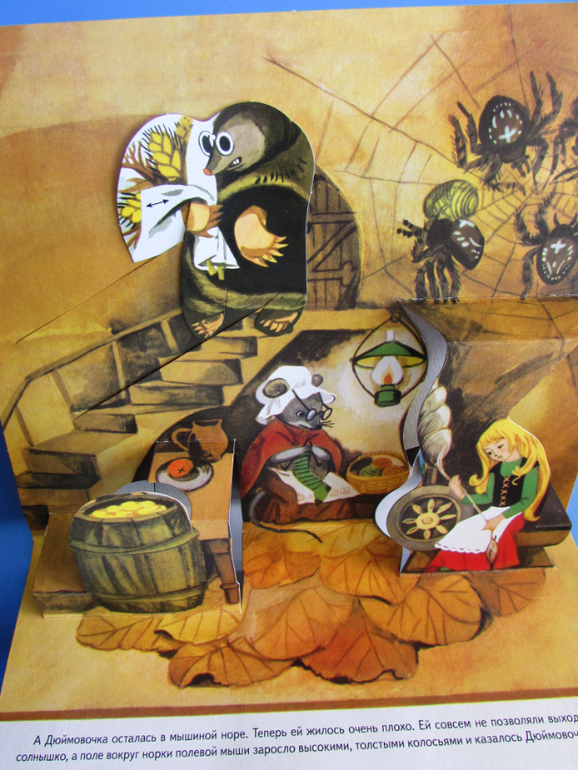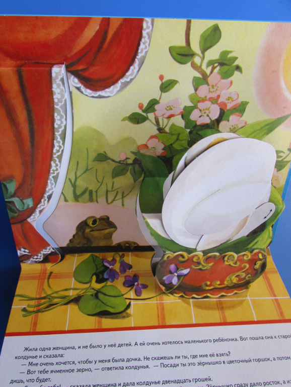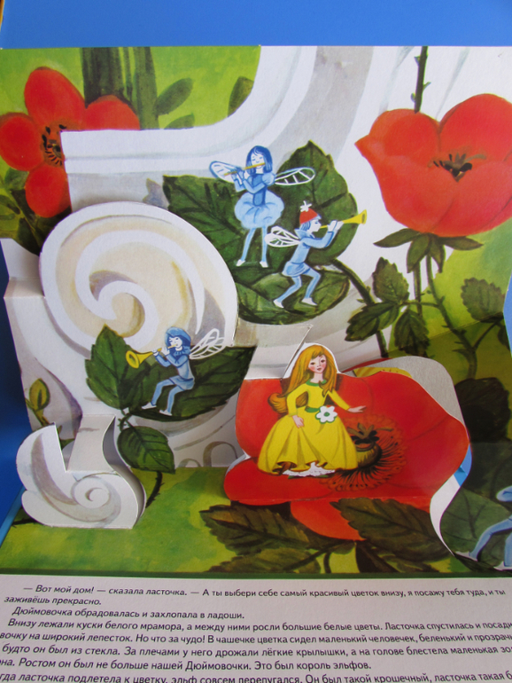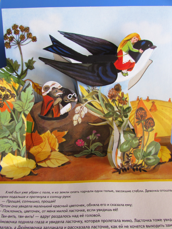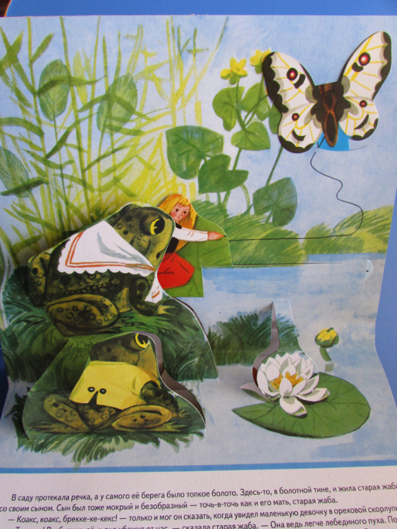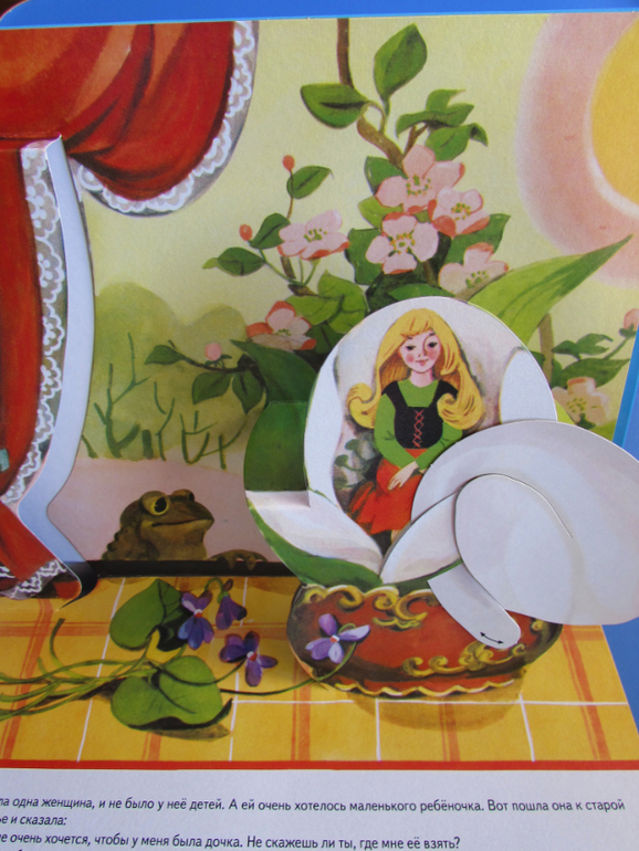 А на следующем развороте Дюймовочка плывет на листочке кувшинки и т.д.