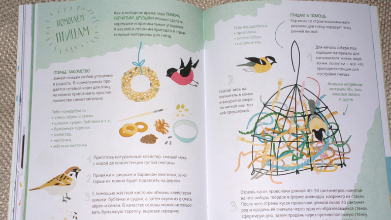 Меня, конечно же, это очень порадовало: во-первых, ребенок стал внимательно смотреть по сторонам, заинтересовался многими растениями, птицами в нашем парке, а во-вторых, завел свой дневник и делает в нем заметки. Теперь наши прогулки превратились в познавательный процесс. Книга дает много идей для семейного объединяющего досуга - мы на прогулке замечаем что-то необычное, новое для нас. Дома читаем в книгах информацию об увиденном, обсуждаем ее, делаем мини-проекты, мастерим из природных материалов различные игрушки и полезные вещи.