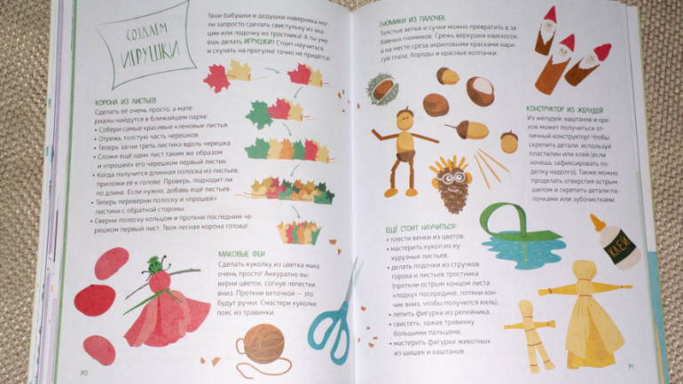 В главе "Природная мастерская" читатели узнают как из найденных на природе сокровищ сделать полезные вещи.