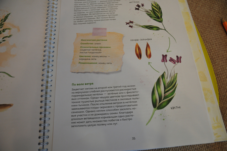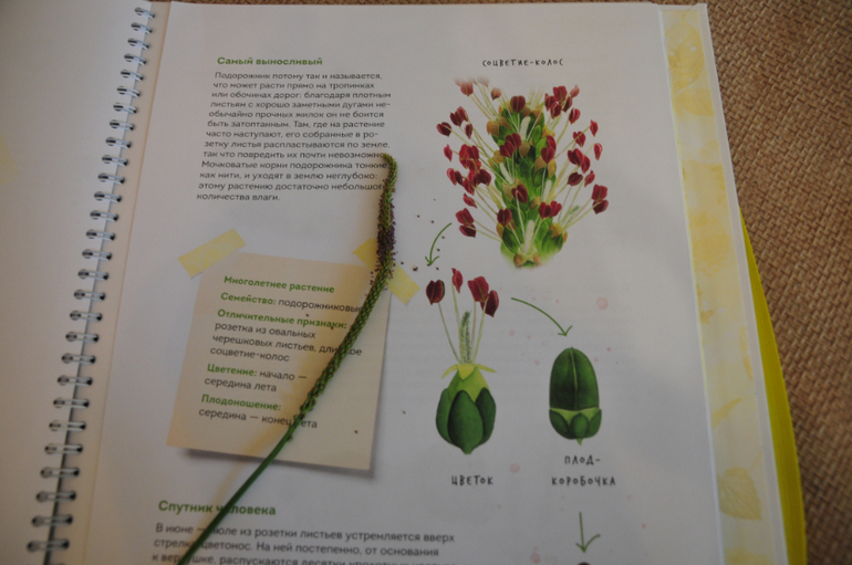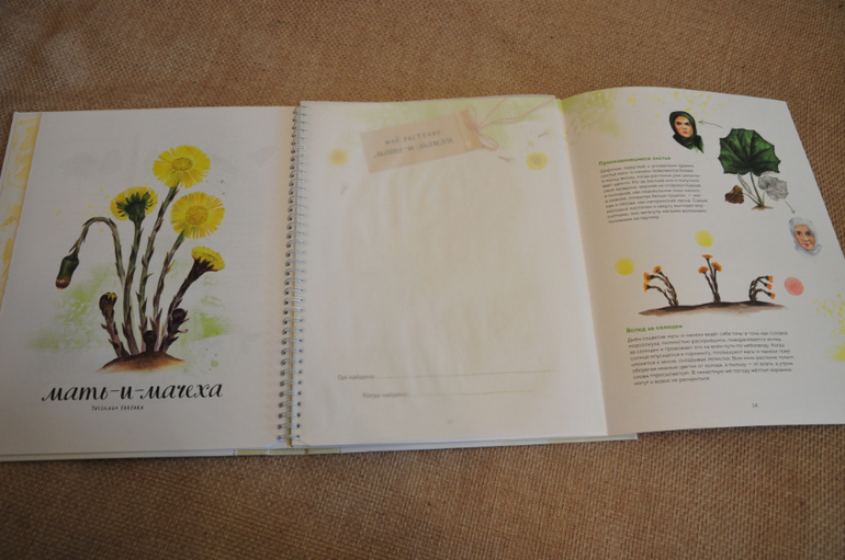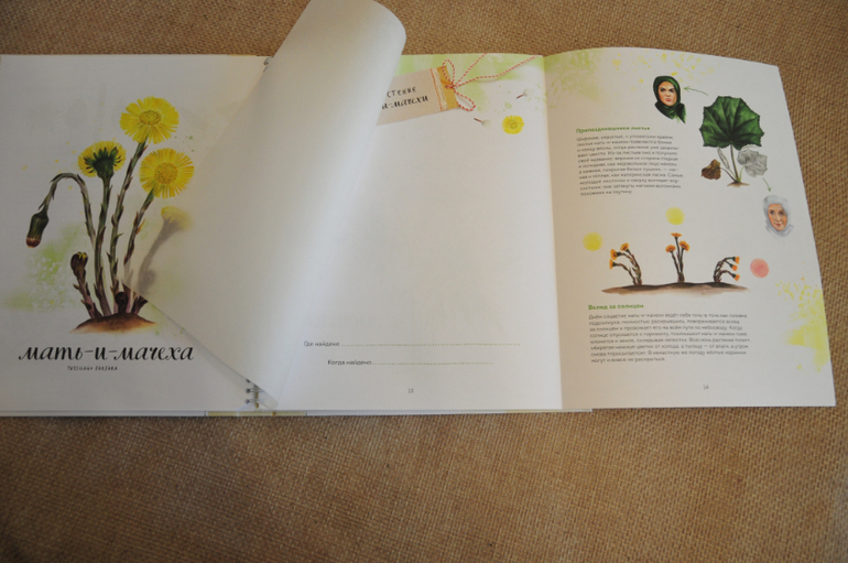 А хранить запущенные травы можно прямо в этой книге, для этого предусмотрена специальная страничка, куда можно прикрепить засушенную траву и сделать записи. Такой своеобразный интерактивных даёт возможность ребёнку дополнить книгу и собрать свою собственную научную коллекцию-гербарий.