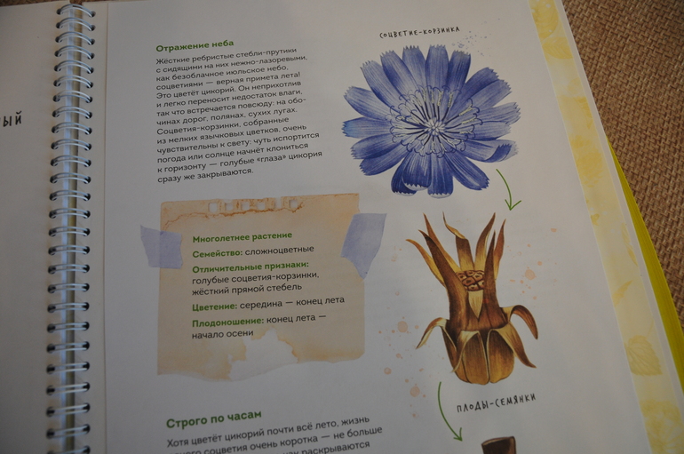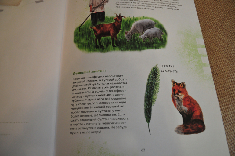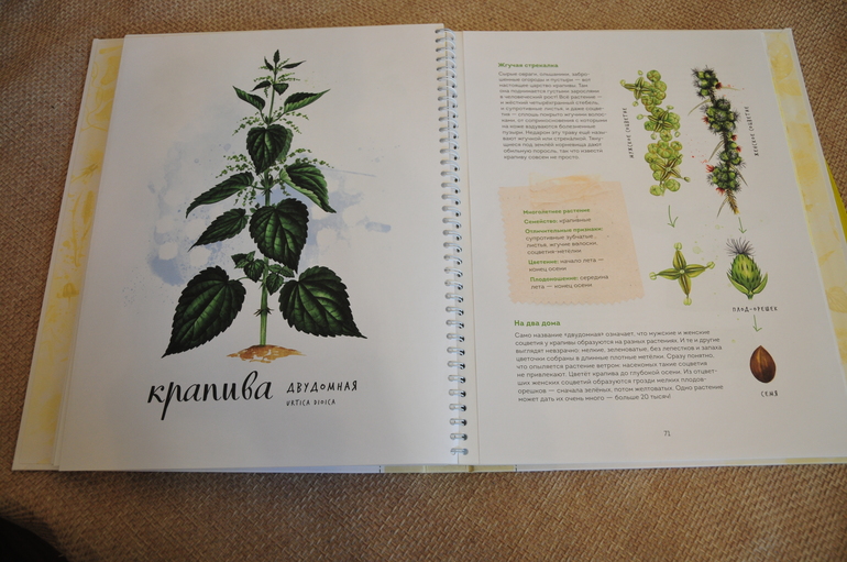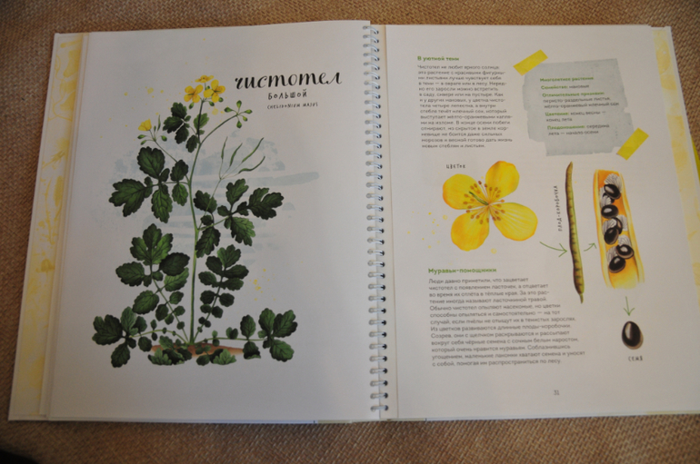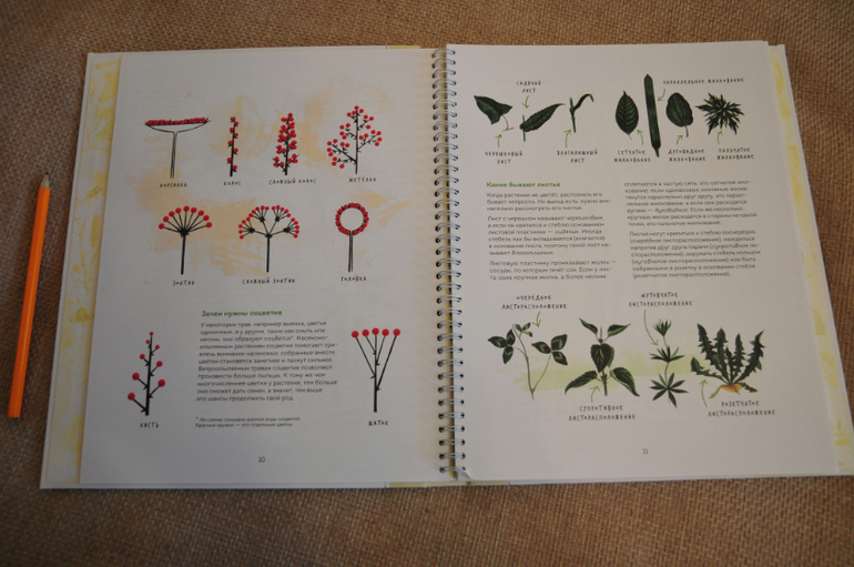 Очень понравился мне и научная классификация соцветий растений, листьев и корней. Книгу мы с сыном читали понемногу, чтобы информация не смешивалась. И уже после прочтения введения, сынок начал замечать особенности встречающихся на прогулке растений.