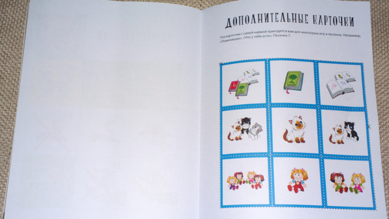 Эти карточки расположены в самом конце книги. Они цветные, напечатаны на плотной белой бумаге. Перед каждым занятием необходимо вырезать по 1-2 карточки.