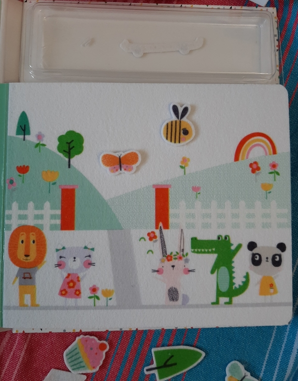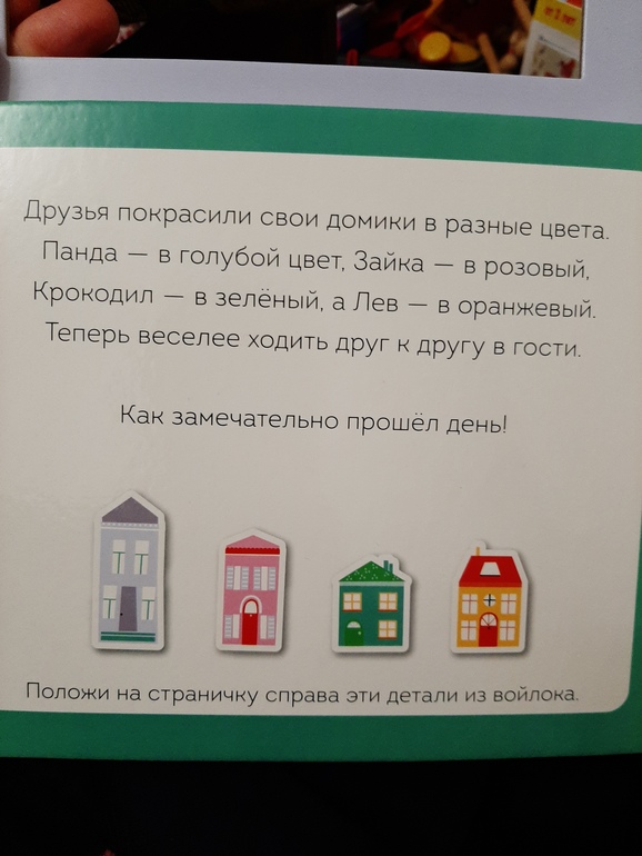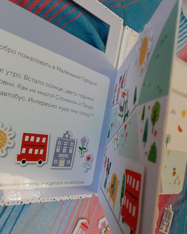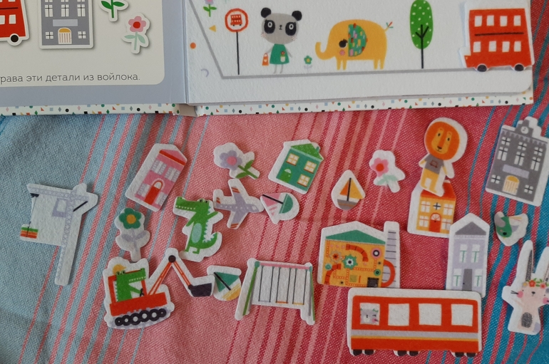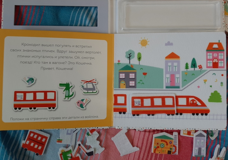 Сами странички загруглены, нет риска пораниться! Детальками можно обыгрывать историю, можно придумывать свои, можно комбинировать детальки из разных наборов, развивая фантазию и речь, можно изучать понятия выше, ниже, справо, слево, вообщем, развивать ребенка, просто читая и играя в интересную книгу!