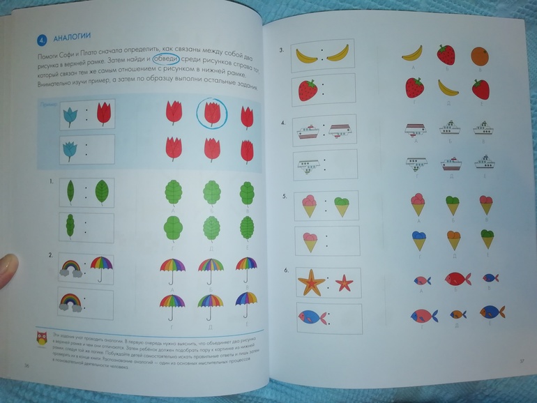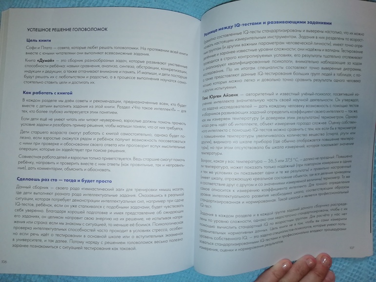В конце книги есть информация для родителей, где подробно рассказано как работать с книгой, даны рекомендации для успешного выполнения заданий. Так же, в разделе информации для родителей есть подробная статья про интеллект.