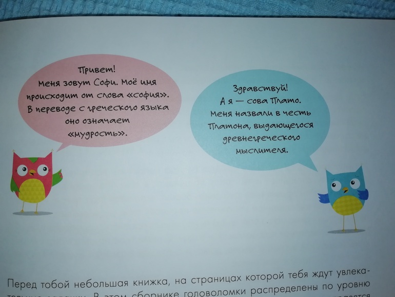 В самом начале книги забавные совушки Софи и Плато просят помощи у читателя с решением задач: