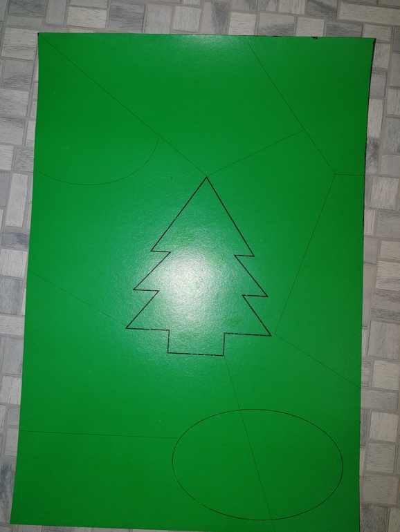 На зеленом картоне наметила пазлы: