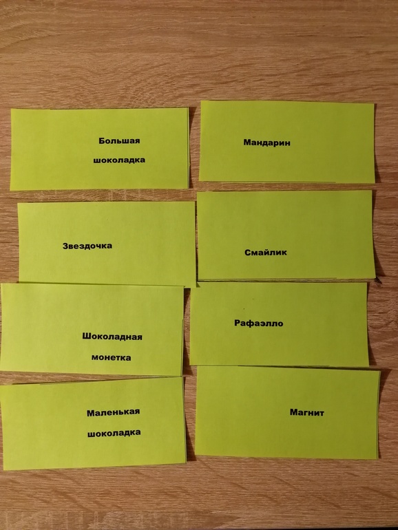 На скомканных бумажках названия призов: