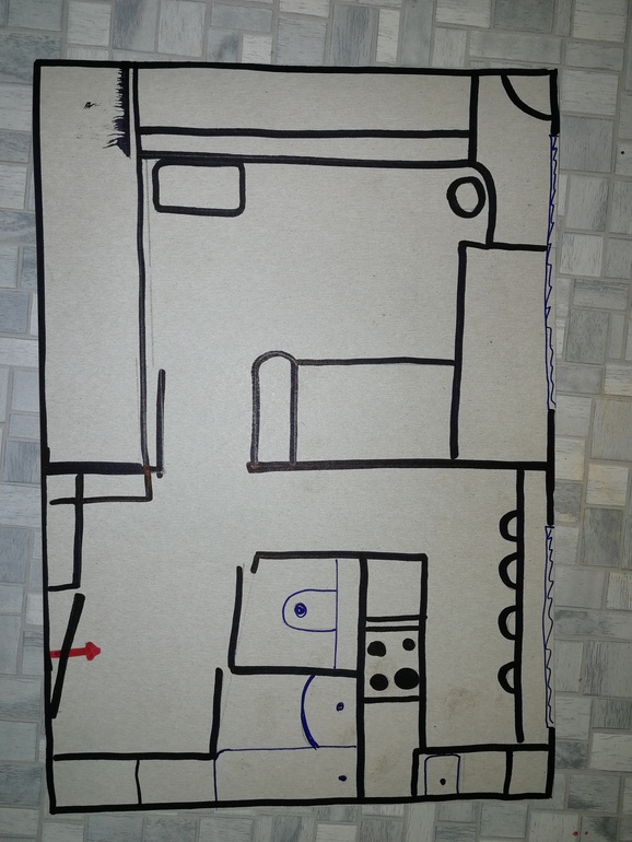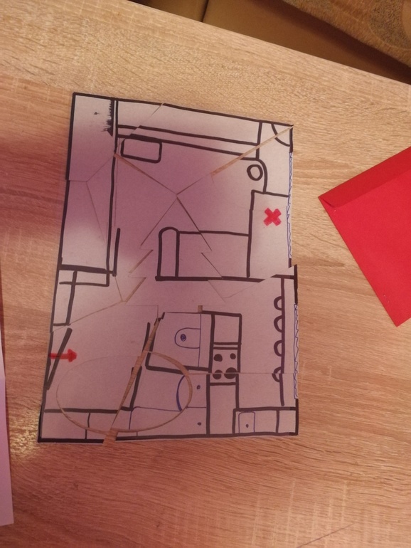 На обратной стороне нарисовала план квартиры, где предстоит искать подарки: