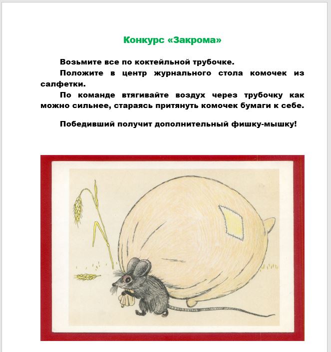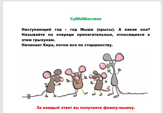Конверты с заданием закончились, а мышек в домиках не хватает. Поэтому я задавала "мышиные" вопросы и любой мог ответить, заработав фишку-мышку: