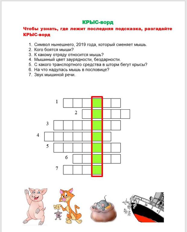 Все мышки вернулись в свои домики, и можно снимать последнее письмо. А в нем КРЫС-ворд: