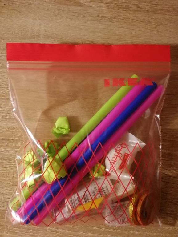 Толстые соломинки, призы и шарики из бумаги для другого задания:
