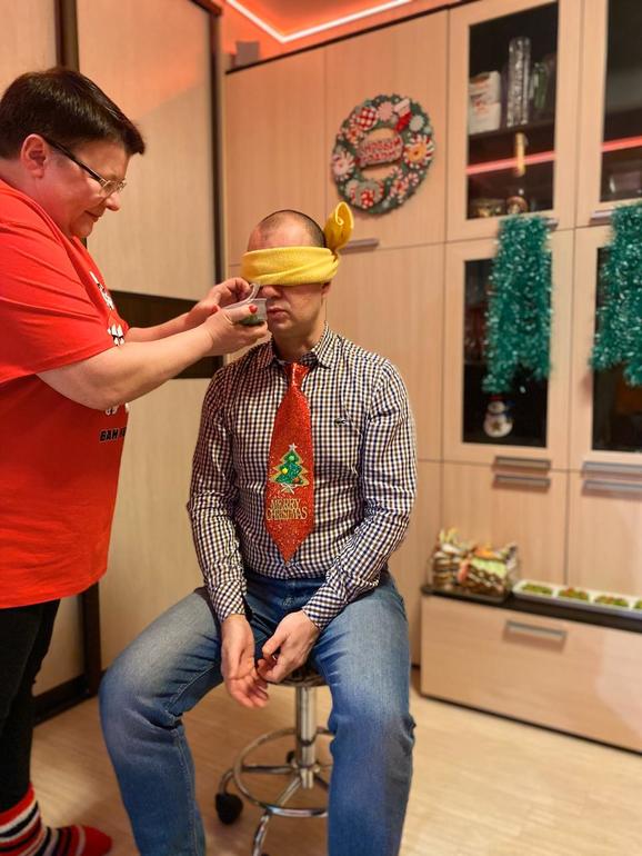 По очереди завязывала глаза всем и приносила из кухни герметичный контейнер, открывая крышку только перед носом. Угадали все:
