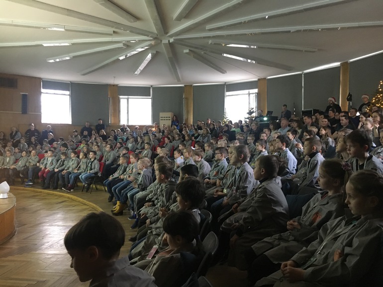 Пока дети были заняты делом (оперировали оленей, создавали узоры из резонирующих снежинок и смешивали новогодние ароматы) нас, взрослых, тоже развлекали. Столько я давно не смеялась, спасибо ведущему Артему. Написали контрольную работу. Победителю подарили абонемент на полгода научных занятий. Эх, я даже не стала подсчитывать количество своих ошибок...