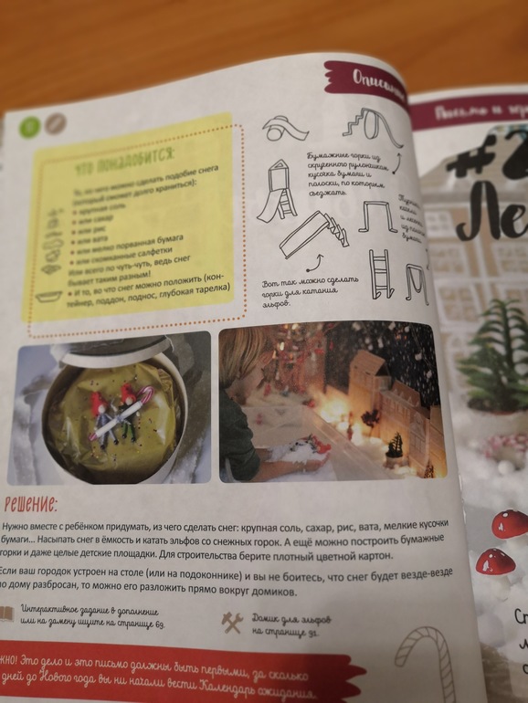 В общем, с утра у сына на подоконнике возникли эльфы, а рядом письмо с заданием придумать снег и горки. Плюс, если совсем нет времени, то в книге есть интерактивные задания. Мы делали все. Вот как это все происходило