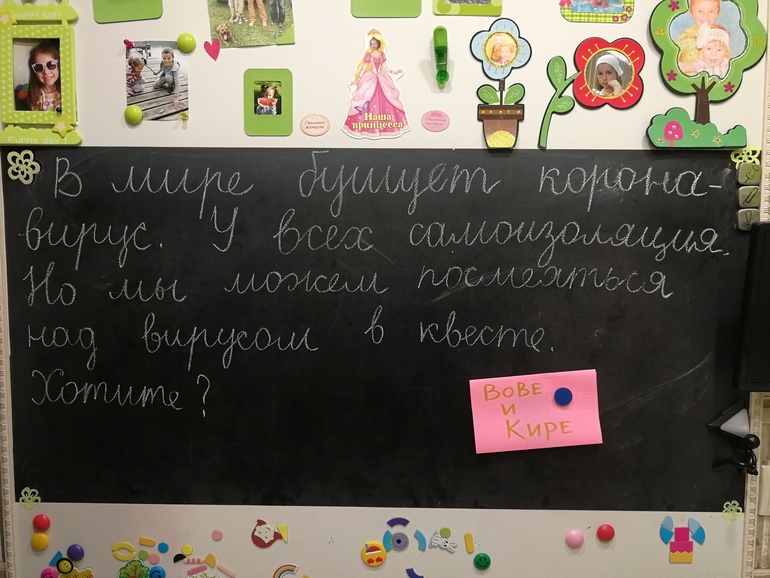 И про начало квеста написала на доске, прикрепив первое письмо: