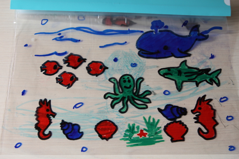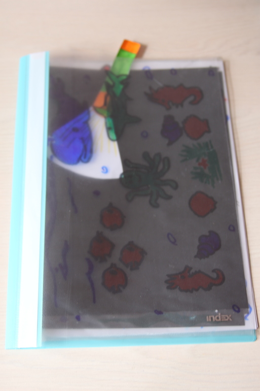 Чтобы было удобно хранить и рассматривать, предлагаю закрепить файлы в папку - скоросшиватель. У нас получилась брошюра - игрушка "Удивительный мир океана".