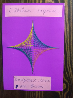 Через какое-то время, неожиданно для себя, я вспомнила про технику шитья по картону - изонить. Научила дочку выполнять уголок в этой технике. Закрепляли умение созданием рамки для фото и подарков бабушкам на новый год. Уголок дался дочке легко, но ей всё же требовалась нумерация точек.