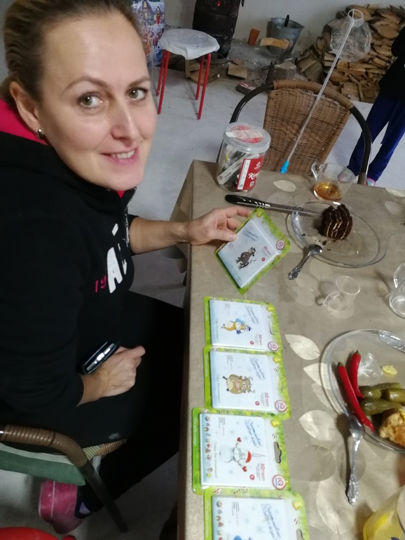 Призами служили медальки, шоколадки, маленькие игрушки, фонарики, брелки. Играли азартно! Победил Вовик.