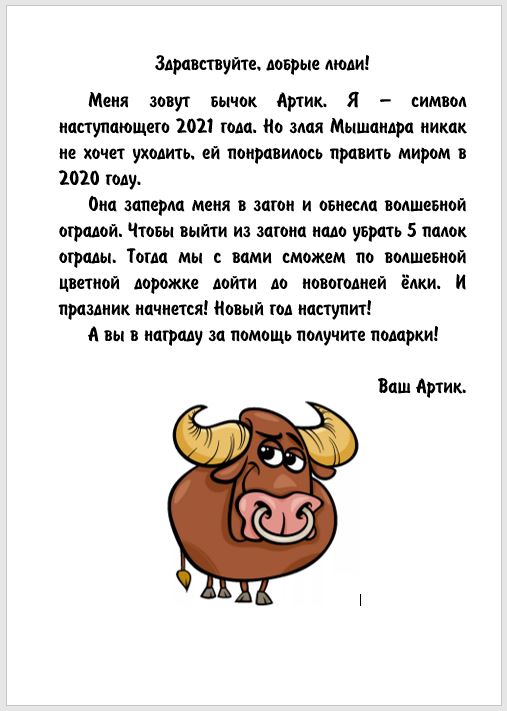 По задумке бычок Артик (имя придумал внук) должен убежать от Мышандры и прийти в новогодней ёлке: