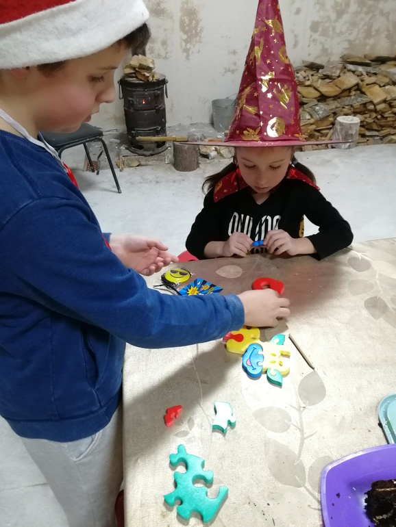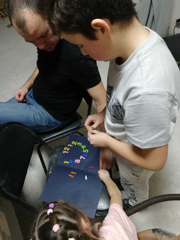 Написала на них буквы. Вытаскивали по 10 квадратиков и пытались составить слова: