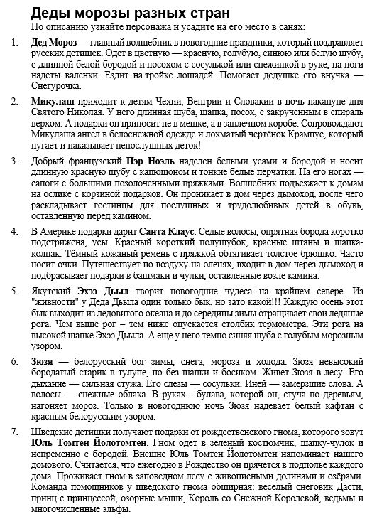 Дедов Морозов разных стран надо было опознать по описанию, которое я читала вслух: