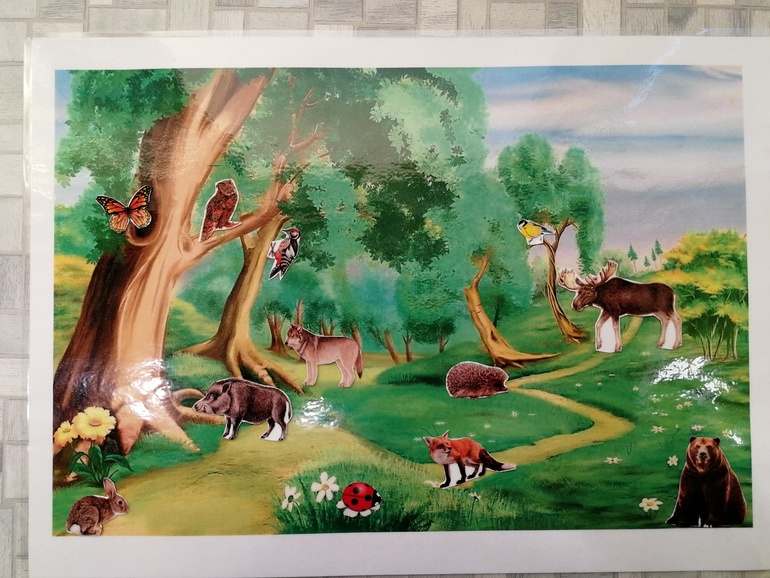 Сложные задания из серии мемори. Запомнить как располагались на опушке животные:
