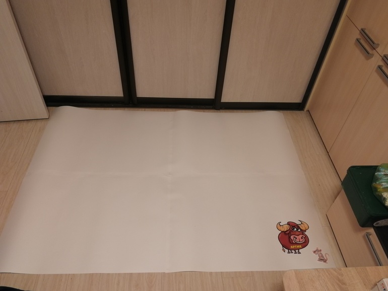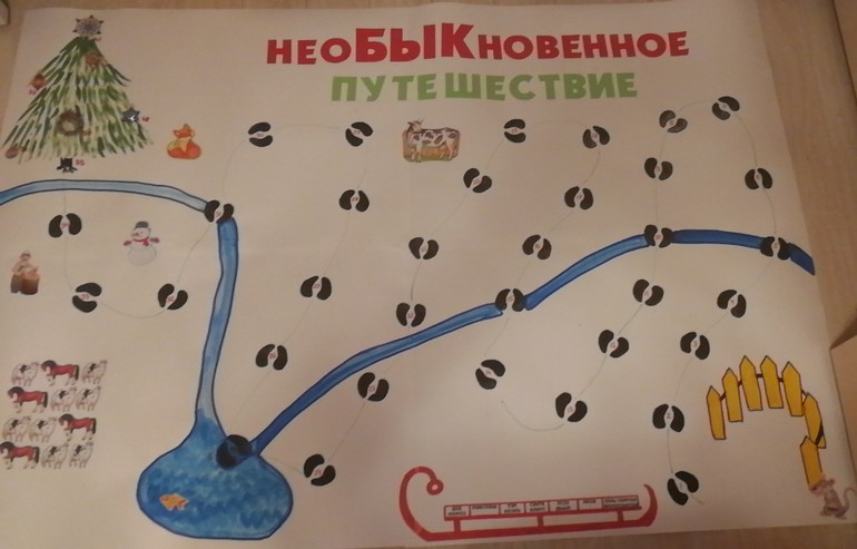 Конечно, пришлось делать большой плакат, по которому будет путешествовать бычок. У меня это 4 листа ватмана: