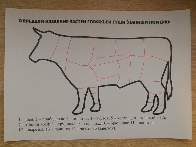 Еще одно интересное задание сделала для брата - назвать части туши коровы: