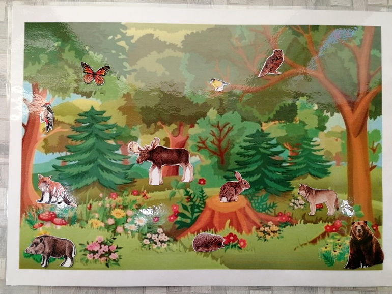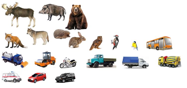И затем повторить расстановку.. Распечатала и заламинировала комплект техники и животных: