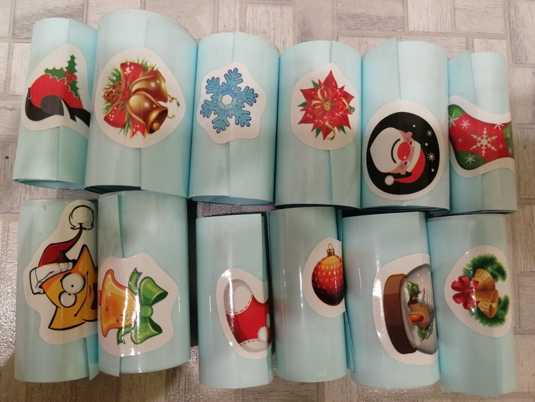 Эти коды были разрезаны и приклеены в соответствующих местах (естественно, без текста, это мои подсказки на заготовке, чтобы не забыть). Пробежав этот путь, дети под столом с ёлочкой нашли свои лабиринты: