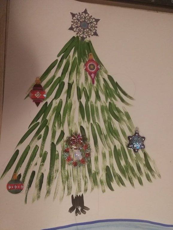 Елочка в конце пути трехслойная. На первом слое елка с игрушками: