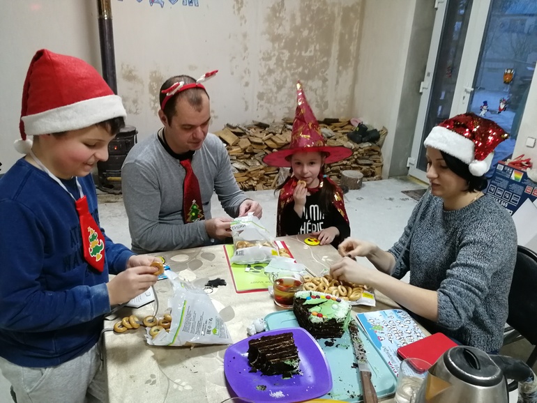 А мы нескучно провели время до самой полночи! И потом смотрели с нашей крыши обалденные салюты. И сами пускали все вместе! Даже 5-летняя Кирюша не спала первый раз в новогоднюю ночь!