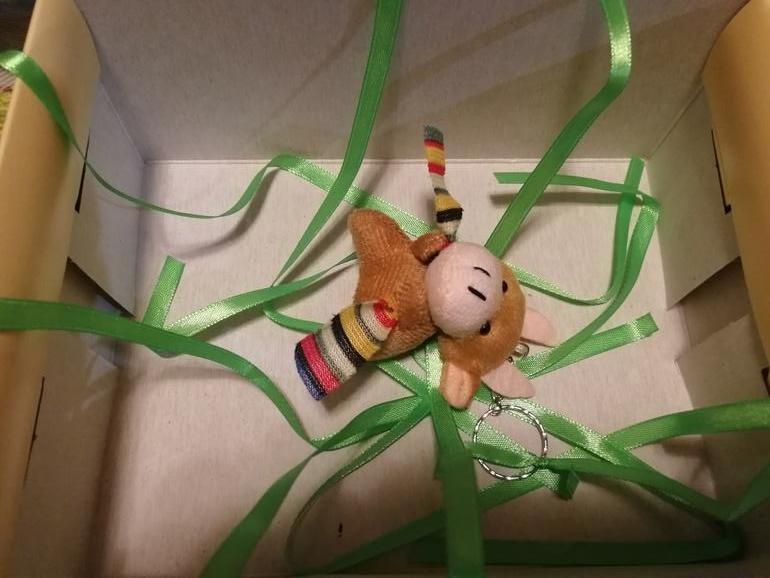 Чтобы узнать кто счастливчик, в коробку положила 8 одинаковых тесемочек. Только к одной привязан приз-бычок: