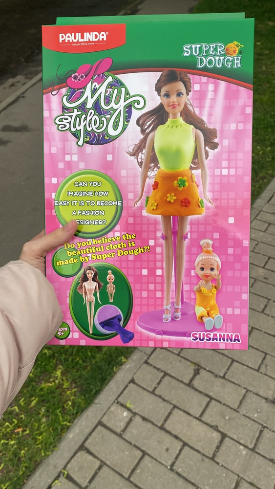 Если бы я купила набор за 1000р, я бы огорчилась . Но за 130р - чудо чудное. Пластилин в наборе весь был сухой, зато стойка и две куколки с цветочками целые. Еще и контейнеры удобные остались. Теперь Вера будет наряжать воздушным пластилином в различные комбинации.