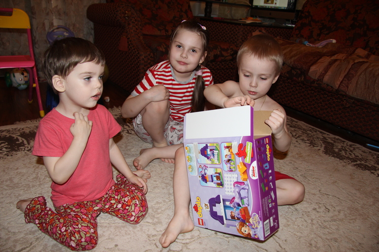 Очень интересно распечатывать коробочку первым,это дело поручили нашему мальчику.