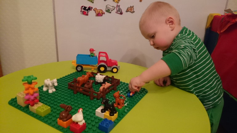Сначала я просто показывала сыну как соединяются строительные блоки; мы изучали цвета, животных и то,как они "говорят". Сейчас мы тоже это практикуем, но уже в виде полноценных занятий.