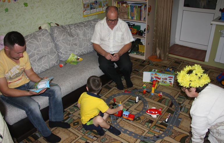 Димка немного помогал мне. Он решил, что это дом и в нём сейчас живут мама, папа и их дочка. Так что иногда я всё таки заставляю Сына развивать Две Ладошки))).