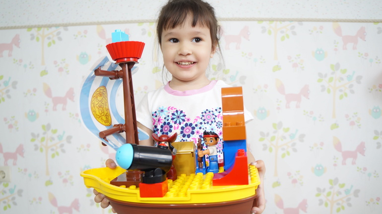 Наборчик оказался достаточно большой. У нас добавились строительные кубики. А главное появился огромный плавучий корабль. Да,да. Он прекрасно плавает в ванной, поэтому теперь во время купания разворачиваются настоящие "пиратские" игры.