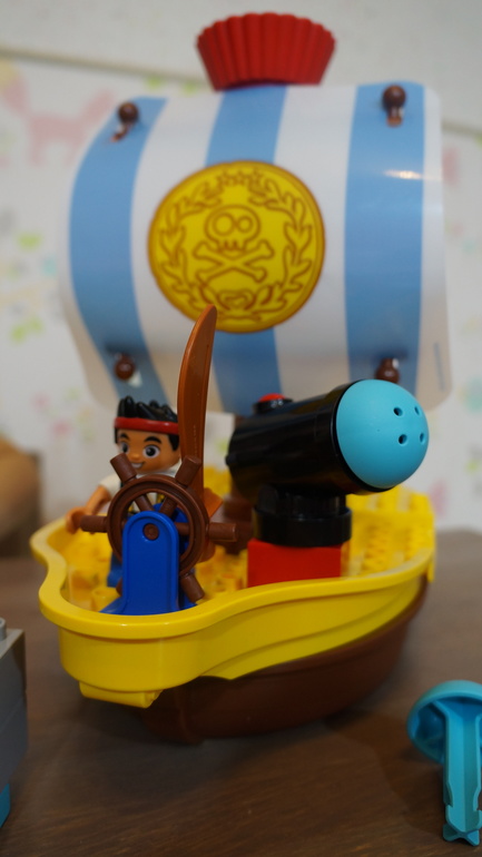 Джейк как и полагается вооружен саблей. На корабле стоит пушка. Она умеет стрелять.