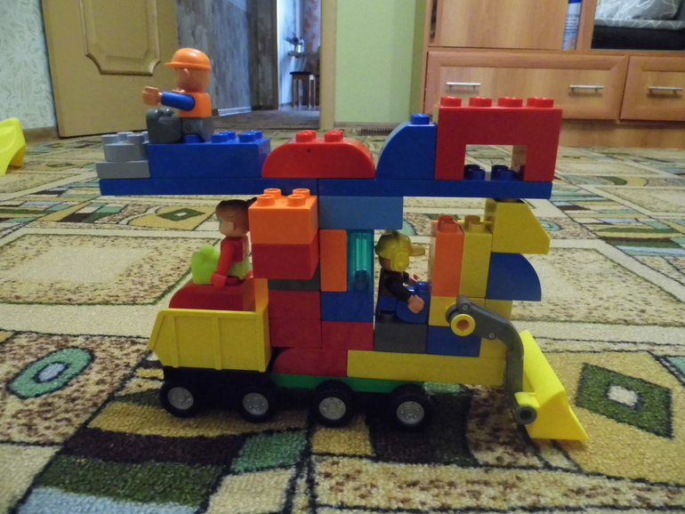 Естественно, сначала мы собрали всё по инструкции. Но потом инструкции были забыты и мы уже придумывали свои модели машин, крана.