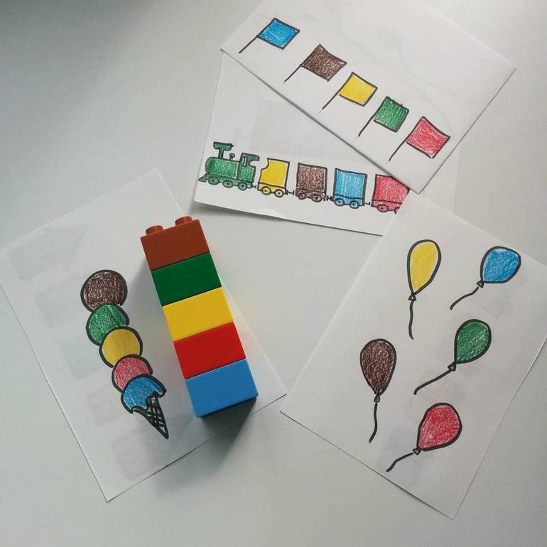 собрать по образцу. можно играть, кто быстрее соберет. с мороженым, например, последовательность очевидна. а с шариками уже сложнее (ребенку) оценить, какой цвет выше, какой - ниже
