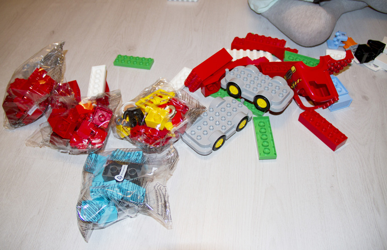 Мы не стали откладывать набор до Нового года и сразу его открыли. Вообще нет, это даже не набор, это ОГРОМНЫЙ наборище) Одна только коробка размером с ребенка, представляете?) А вы можете представить себе восторг ребенка, который достает из коробки детали, одну за другой, а они не кончаются? Деталей в наборе в самом деле очень много: здесь и машины, и двери, и окна, и даже кровать и чайник, и это помимо обычных кубиков.