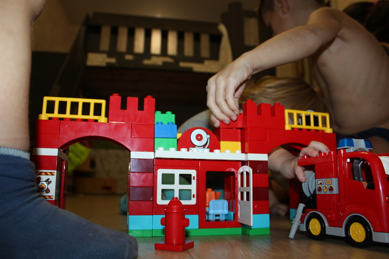 На фото ниже - подтверждение тому, что девочкам тоже не чужды игры в лего. Помимо этого, в наборе имелись двое пожарных - усатый дяденька и пожарный-девочка! Для девчонок это очередной плюс, как мне кажется.