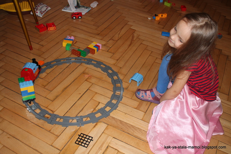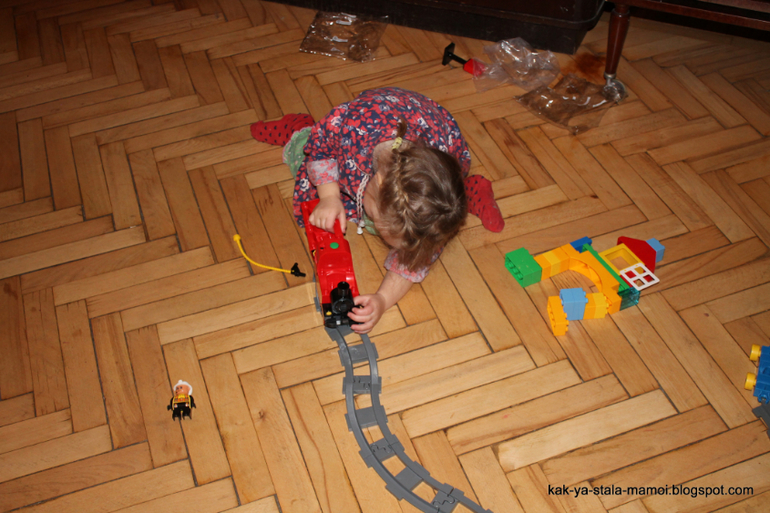 И еще такой момент, который принес нашей семье некоторое облегчение. Поезд девочкам настолько сильно понравился, что они даже спокойно в него могли играть в утреннее время часа 2. Уж не знаю, что они там с ним делали, потому что мы, наконец, за последние 4 с половиной года, не подскакивали с кровати в 7 утра (самое позднее) и шли на кухню варить кашу, а СПАЛИ СПОКОЙНО в кровати.