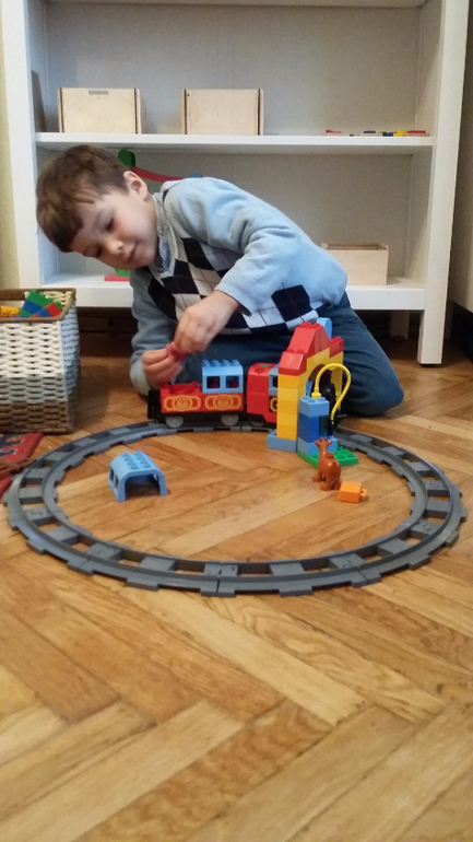 Пока папа вставлял батарейки в локомотив и удивлялся, насколько надежно они спрятаны от детей в поезде, Лука собрал дорогу и приступил к сборке железнодорожной станции. Инструкция оказалось достаточно понятной для него, а ему ведь всего четыре года!