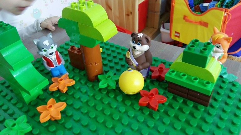 К стати, мы еще и "Айболита" разыграли. Айболитом у нас стал доктор из набора "Скорая помощь", а звери были и леговские минифигурки и просто разные зверята. И "Теремок", особенно весело было строить большой теремок в конце. Так что отличная забава с конструктором